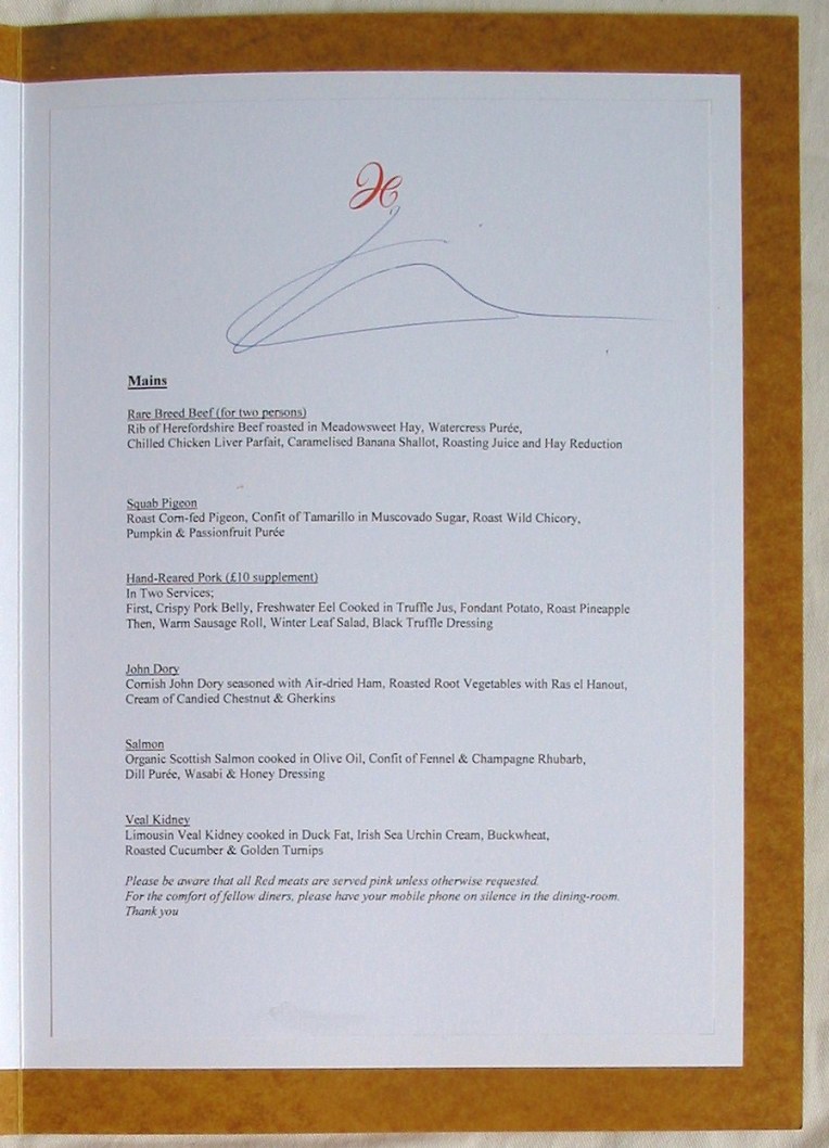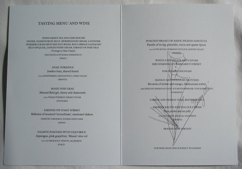 - Chef: Heston Blumenthal