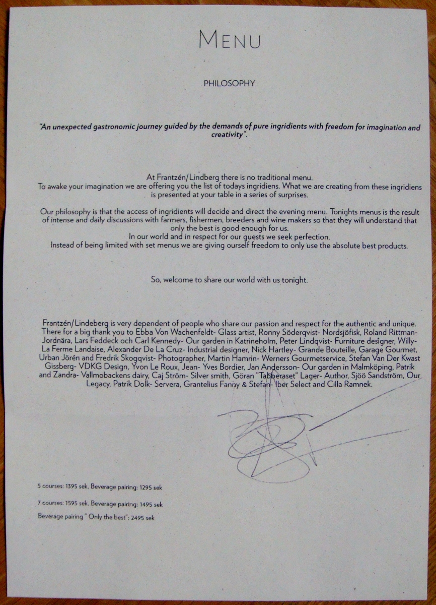 - Chef: Björn Frantzén and Daniel Lindeberg