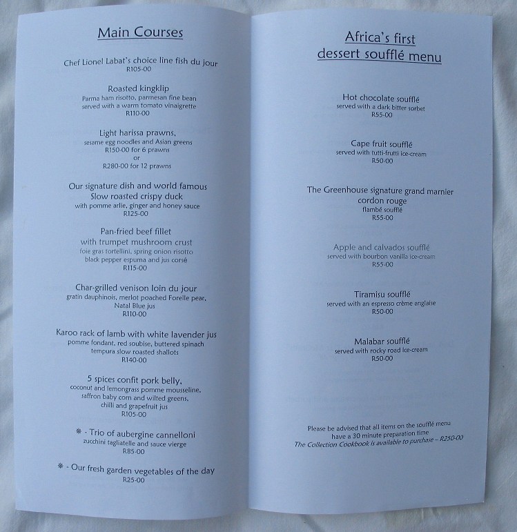 Restaurant menu collection