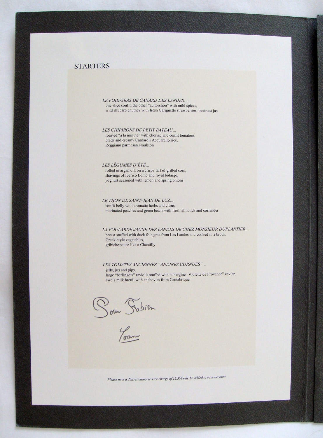 - Chef: Vincent Masson